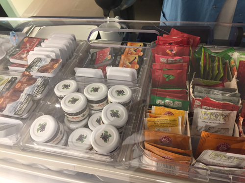 Zum Frühstück kamen 2 Frauen mit einem rollenden Frühstücksbuffet.